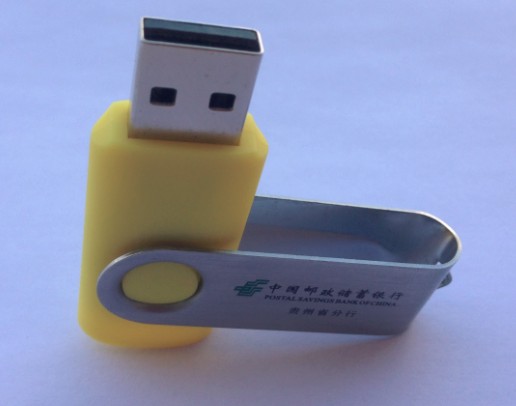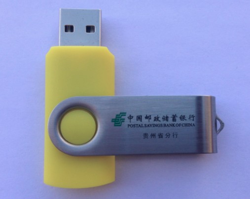 中國郵政銀行貴州分行定制經(jīng)典旋轉(zhuǎn)U盤,塑膠件采用黃色搭配很高檔,LOGO采用絲印效果很炫推廣效果,一般國外客戶和禮品公司都會選著這款旋轉(zhuǎn)U盤。