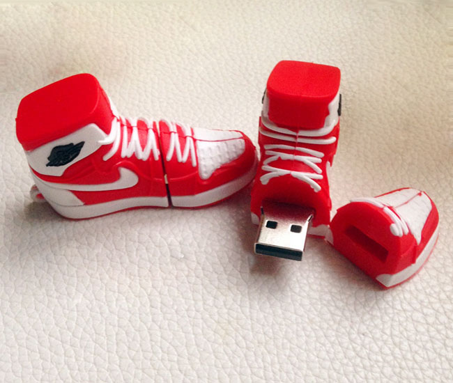 運動鞋模型U盤 8gb卡通球鞋優盤紀念品,這款球鞋U盤是深圳專業U盤廠家設計制作,鞋U盤采用天然環保的pvc軟膠材質制作,款式是按照耐克運動鞋等比例縮放設計開模,U盤外殼可加印企業logo或廣告內容,等同于一份獨特名片,給客戶留下好印象,同時也大大提升公司的品牌、知名度。同時U盤還配有精美的禮品盒,贈送給鞋迷們。